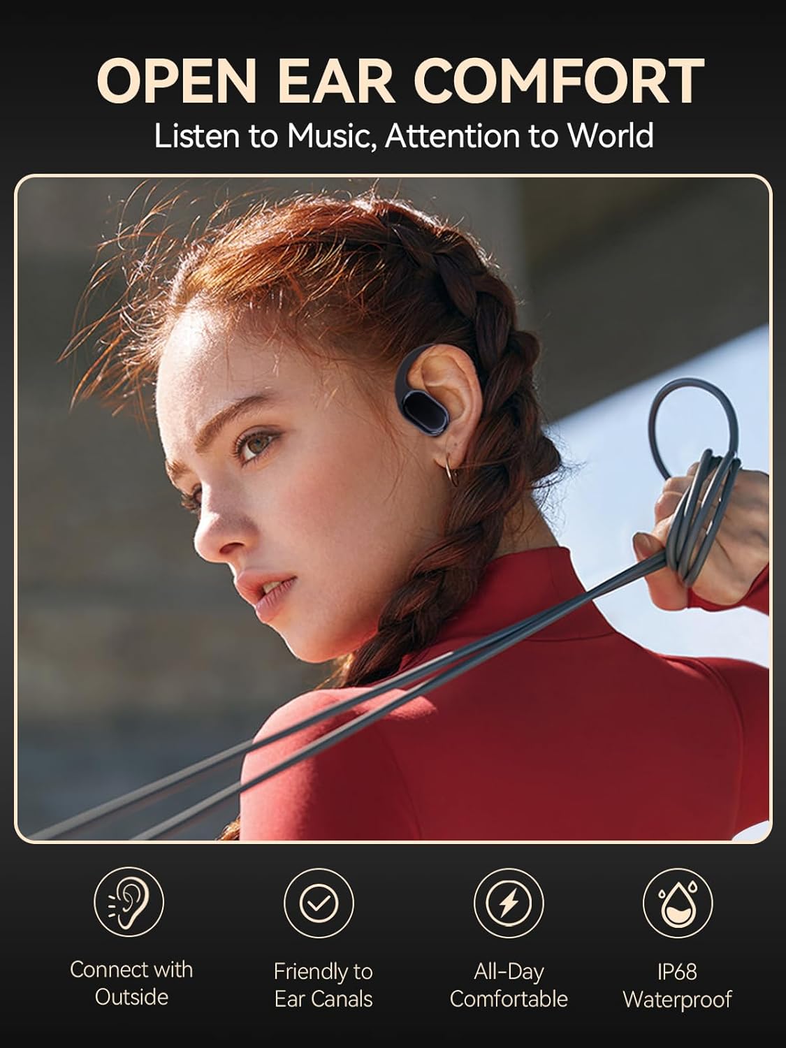 [ IP68 Water-resistant & Long-lasting ] – Our bone conduction earphones feature IP68 water resistance, easily withstanding sweat and rain. An added hydrophobic coating enhances water resistance, prevents water buildup, and allows for easy cleaning, ensuring a long-lasting performance.