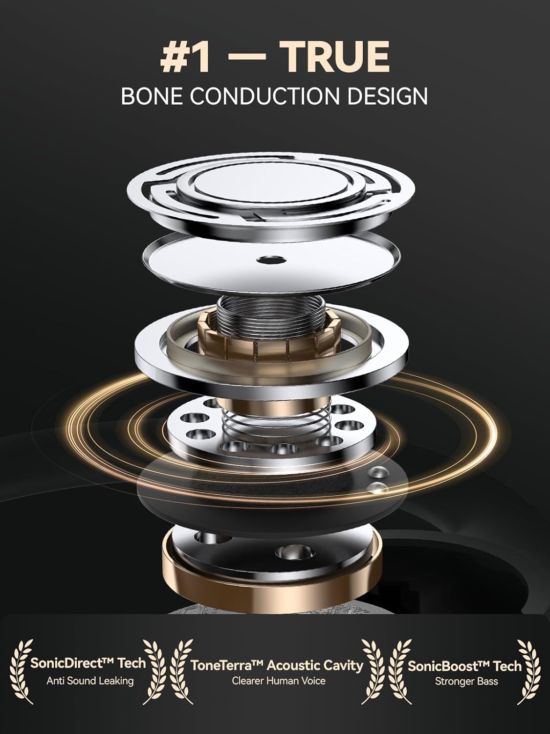 [ Genuine Bone Conduction, Not Air Conduction ] – Our Open-Ear headphones are the world’s first one with true OWS bone conduction design for powerful and authentic audio. Sonic Direct prevents sound leakage for privacy, while Tone Terra and Sonic Boost optimize the acoustic space for a clear, realistic HI-FI audio experience.